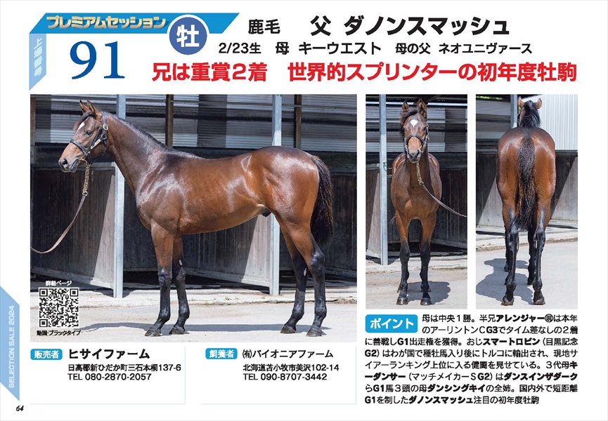 キーウエスト2023 Sプレミアム パンフレット PRページはこちら 性別 牡 生月日 2/23 毛色 鹿 父 ダノンスマッシュ 母 キーウエスト 母父 ネオユニヴァース 販売者 ヒサイファーム セレクションセール上場番号 No.91 ブラックタイプ ブラックタイプはこちら(HBA様ページにジャンプします) 動画